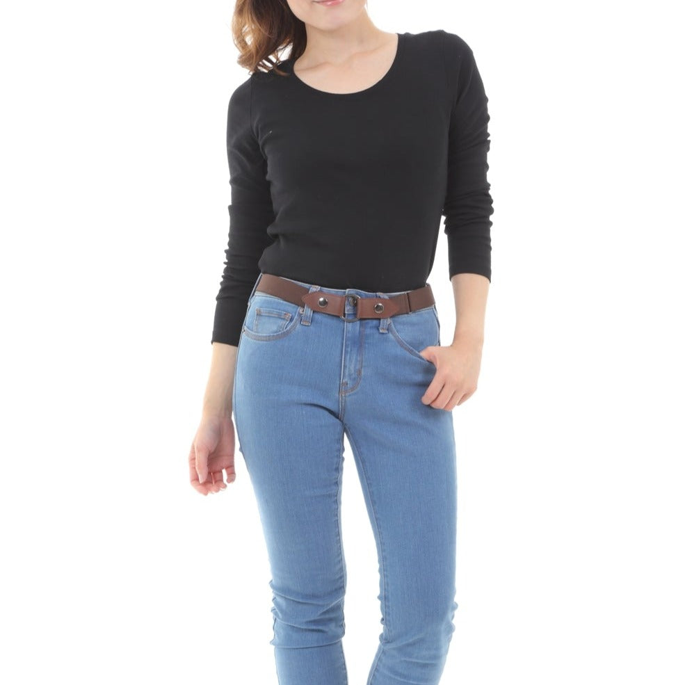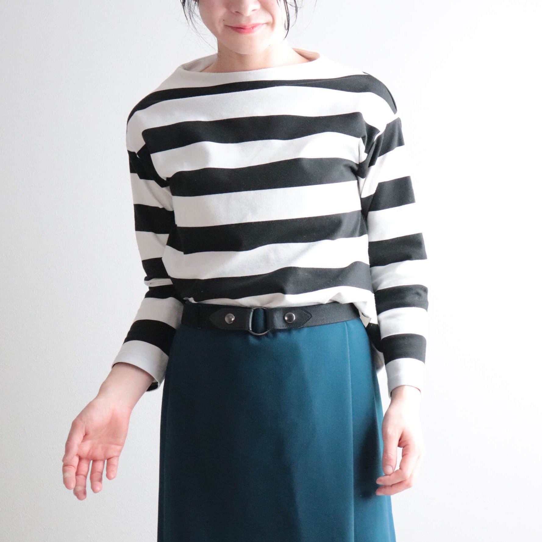 ウェストすっきりゴムベルト 少し太めの30ミリ幅です。 ベルトループでも付属の丸リングでも使える2wayタイプ♪