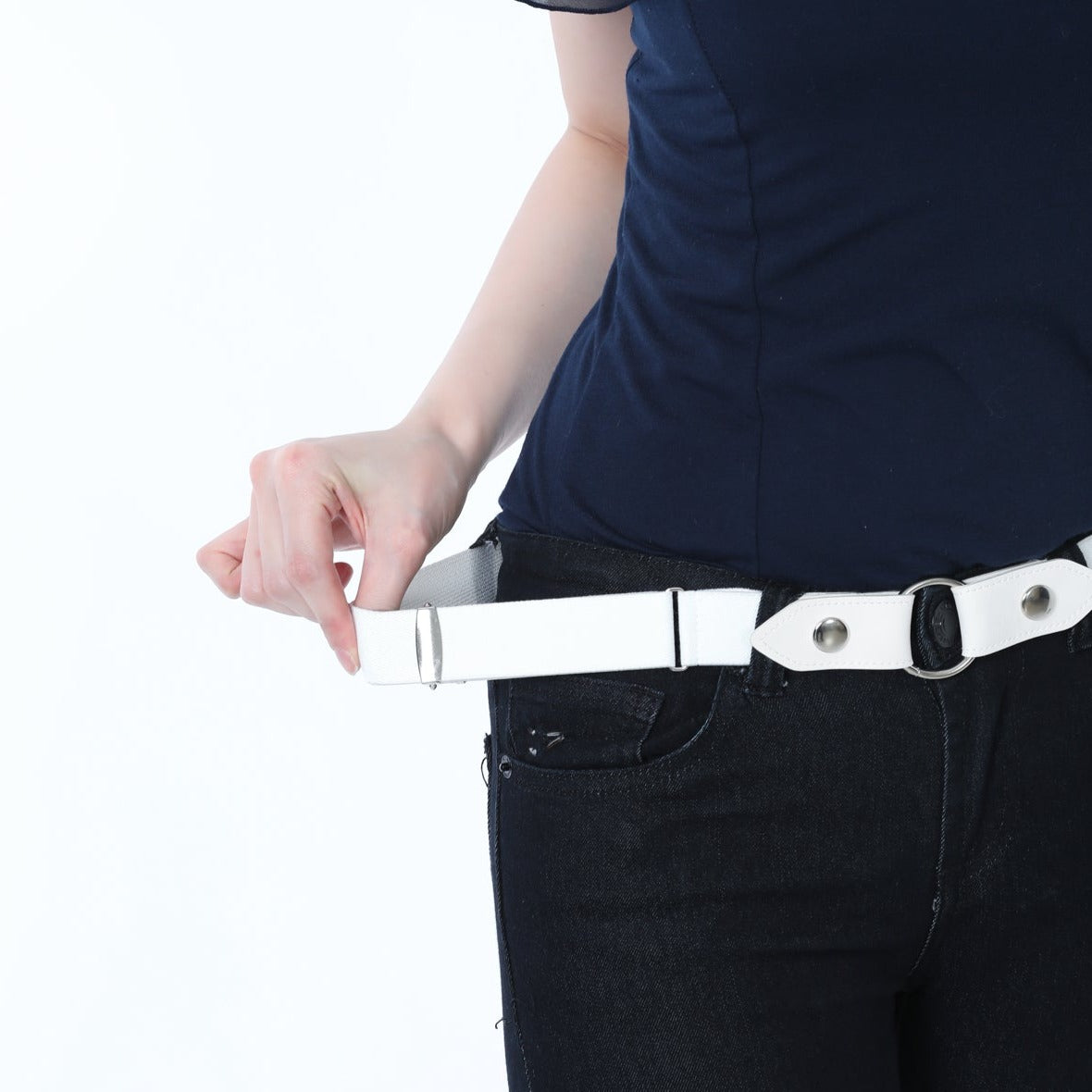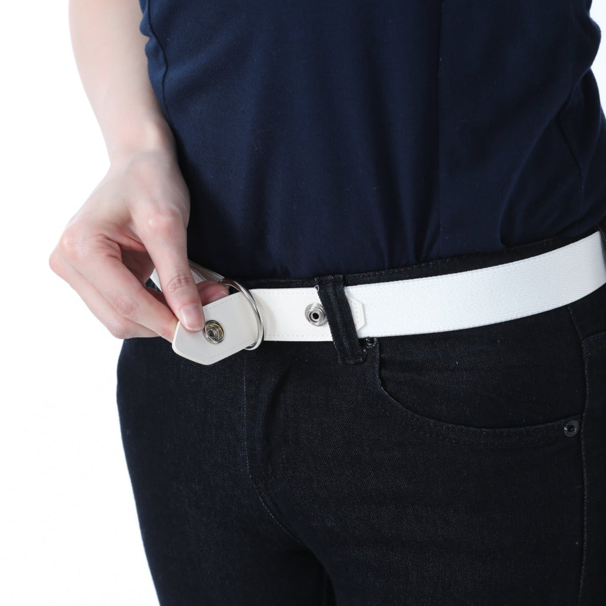 ベルトループで着用するとウエストスッキリ!付属のリングをつければベルトループが無くても使用できます。サイズ調整金具付きで幅広いウエストにも対応します。