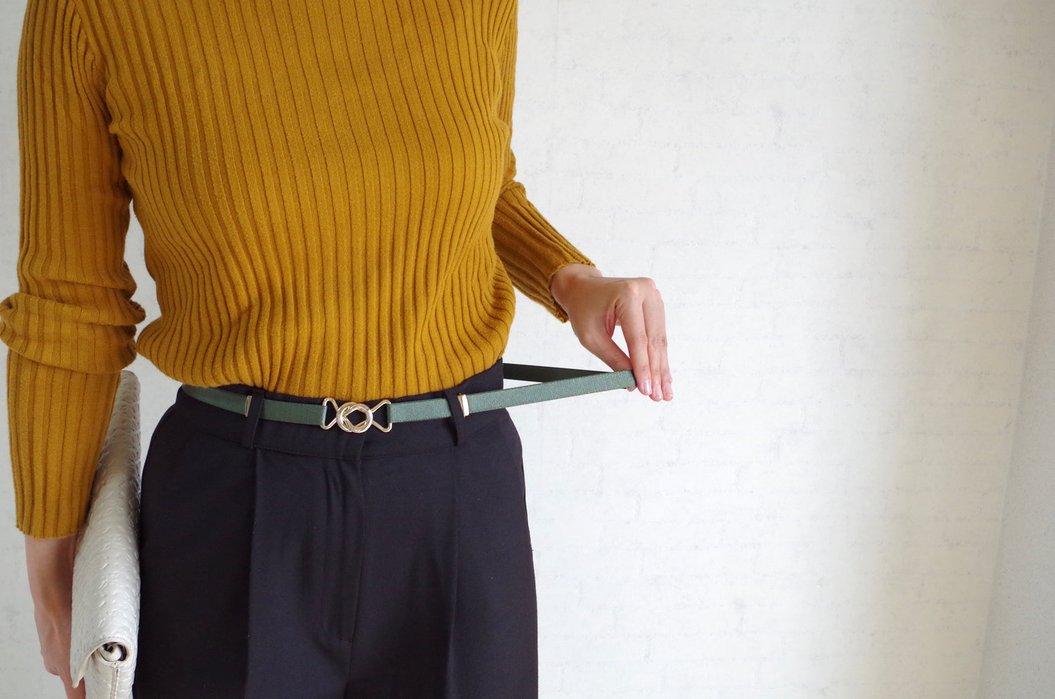 ゴムベルトをお使いいただくと「ラク過ぎて手放せない♪」という感想をいただきます。そんなゴムベルトの特性を活かしながらおしゃれに身につけて頂きたい!