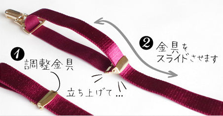 ②調整金具を持ちながらベルトをずらして長さを調整してください。