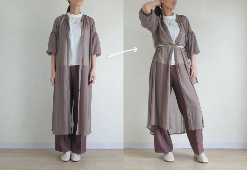 ベルト一つでスタイルアップが実現します。腰の位置が高く見えるようになり、脚長効果抜群です。