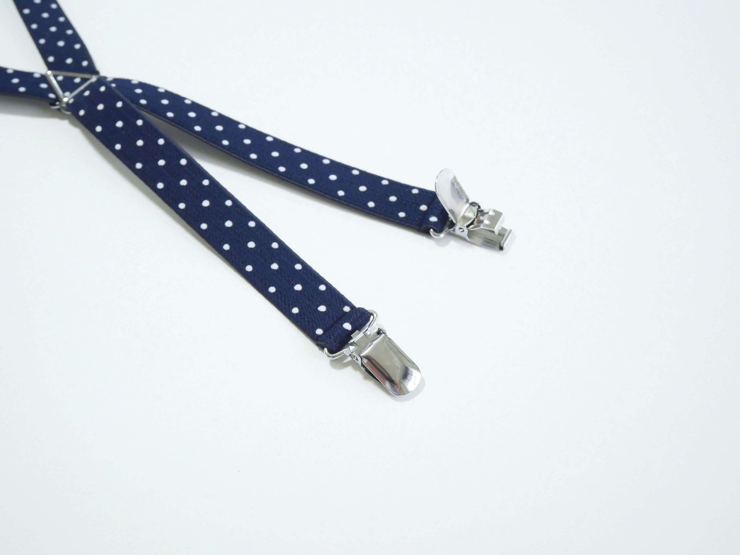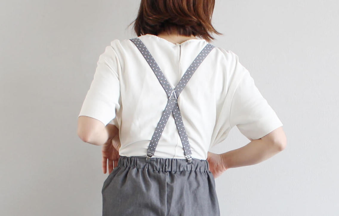 背中のクロス部分はクリップと同じクロームメッキの部分を使用。シンプルなパーツがドット柄の可愛さを引き立てます。