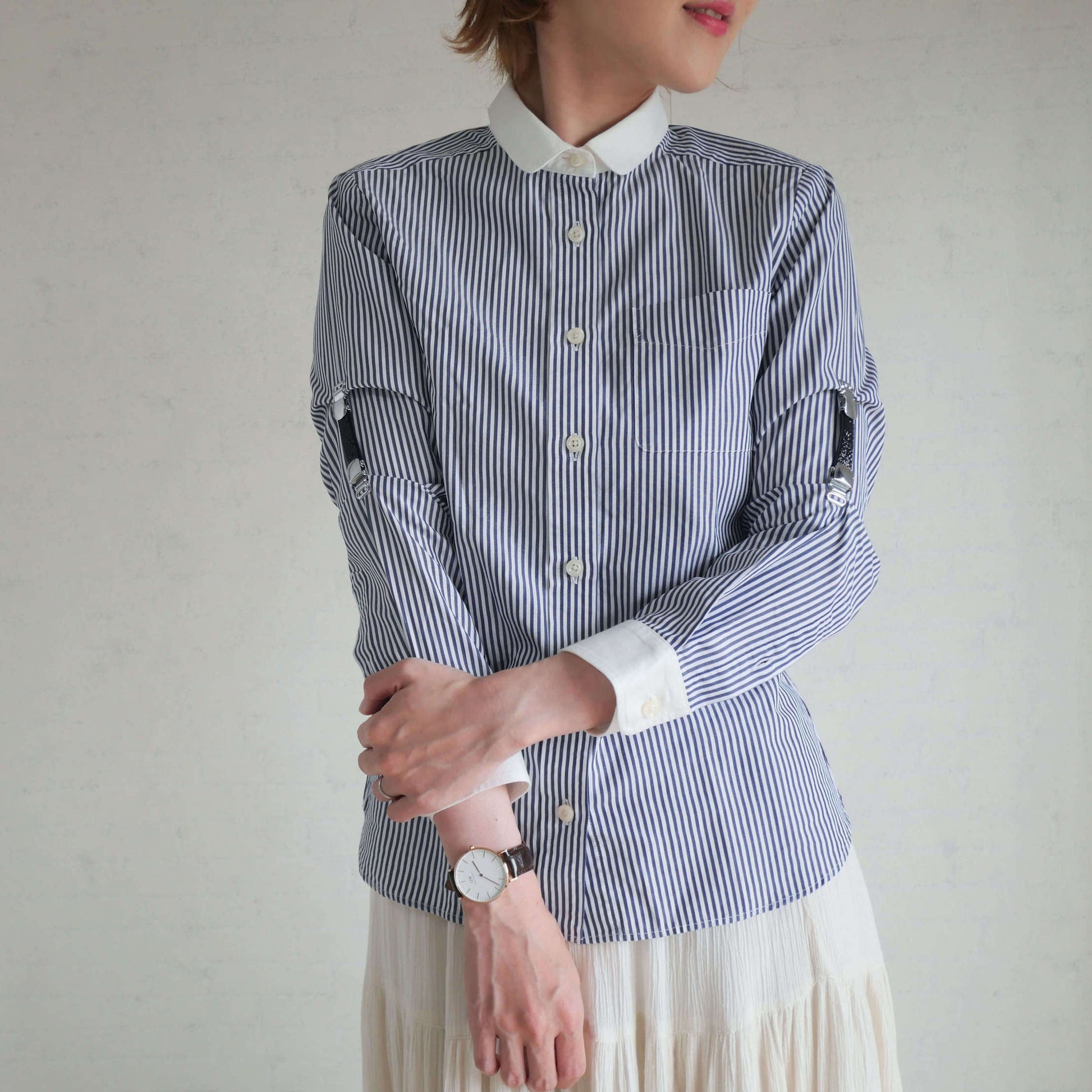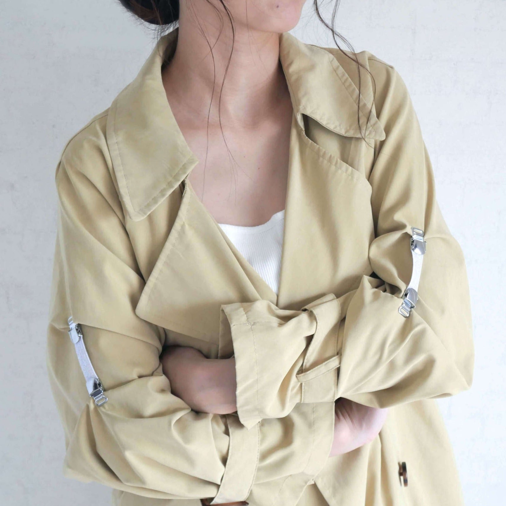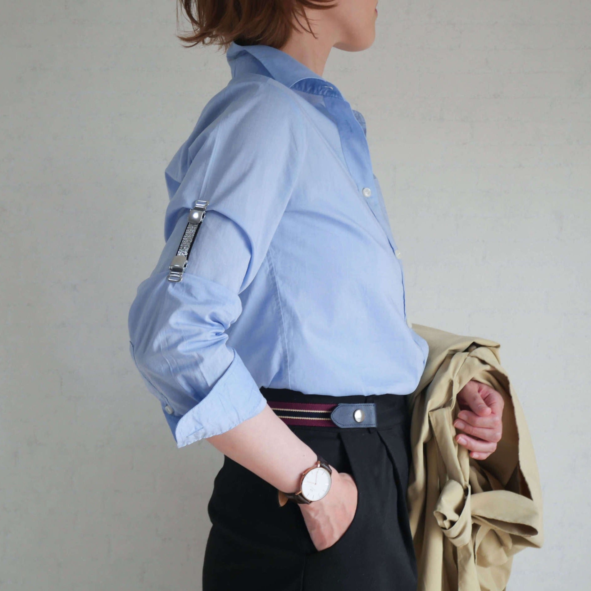 クリップでシャツを挟むことによって、 袖のだぶつきを解消して手元をすっきりとさせます。