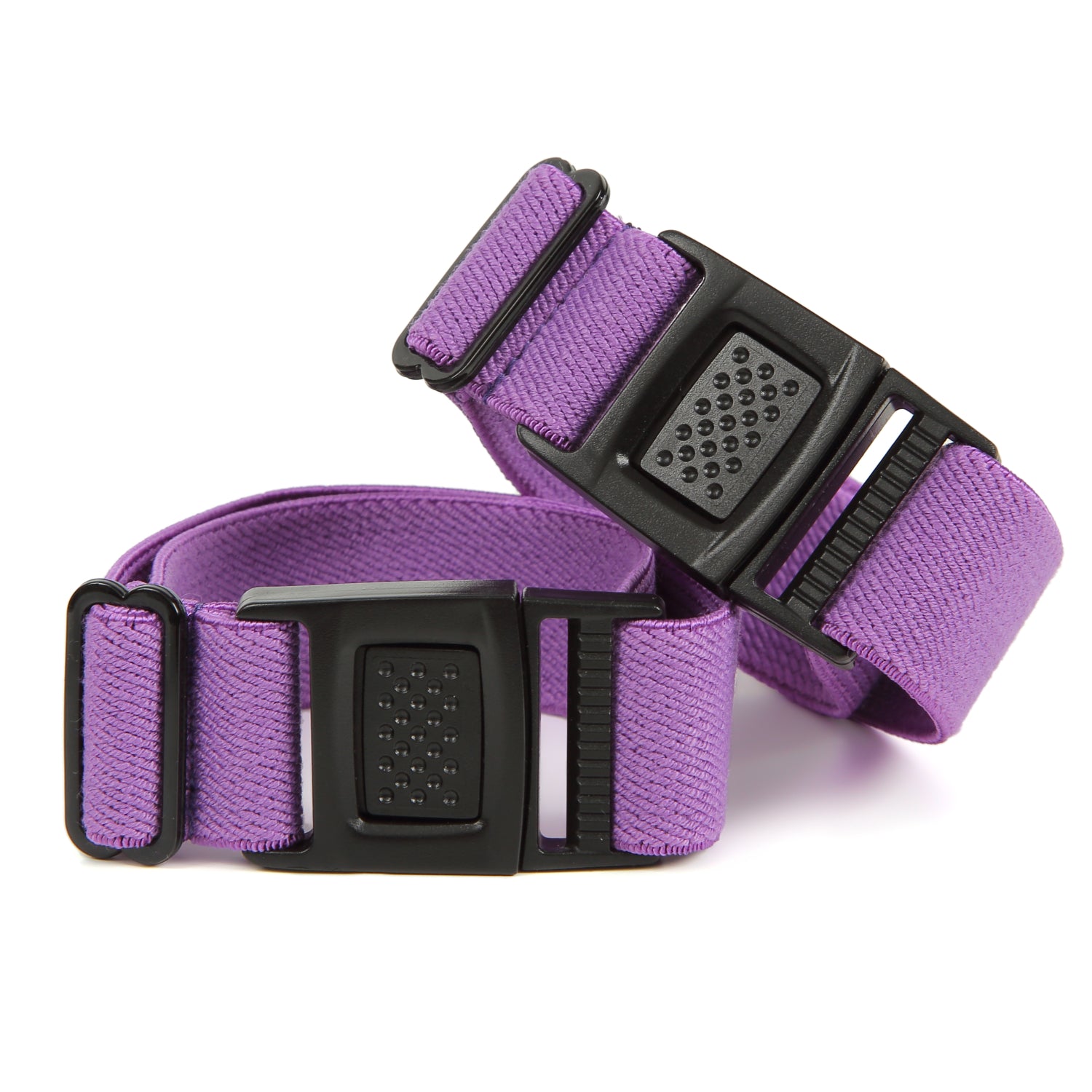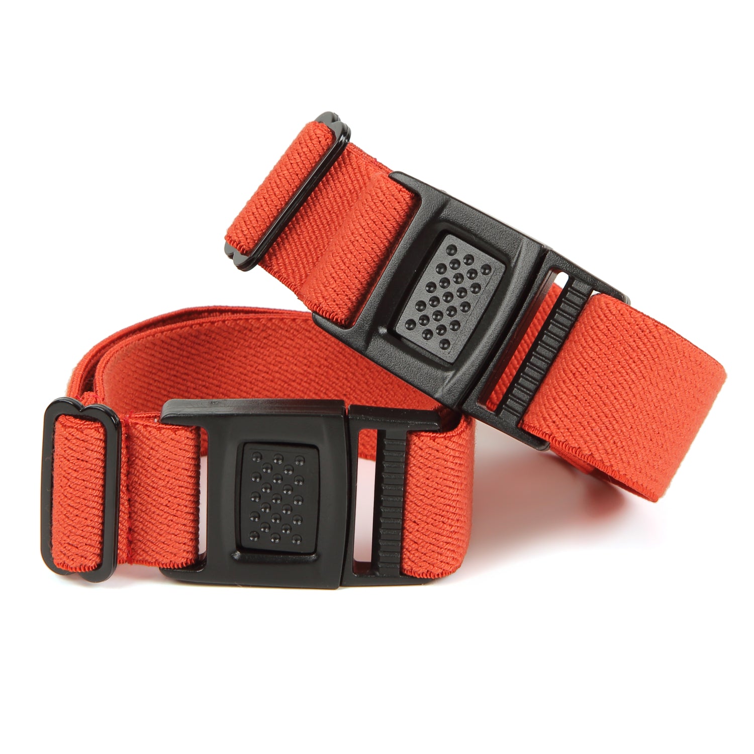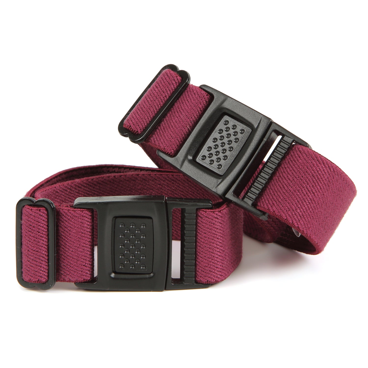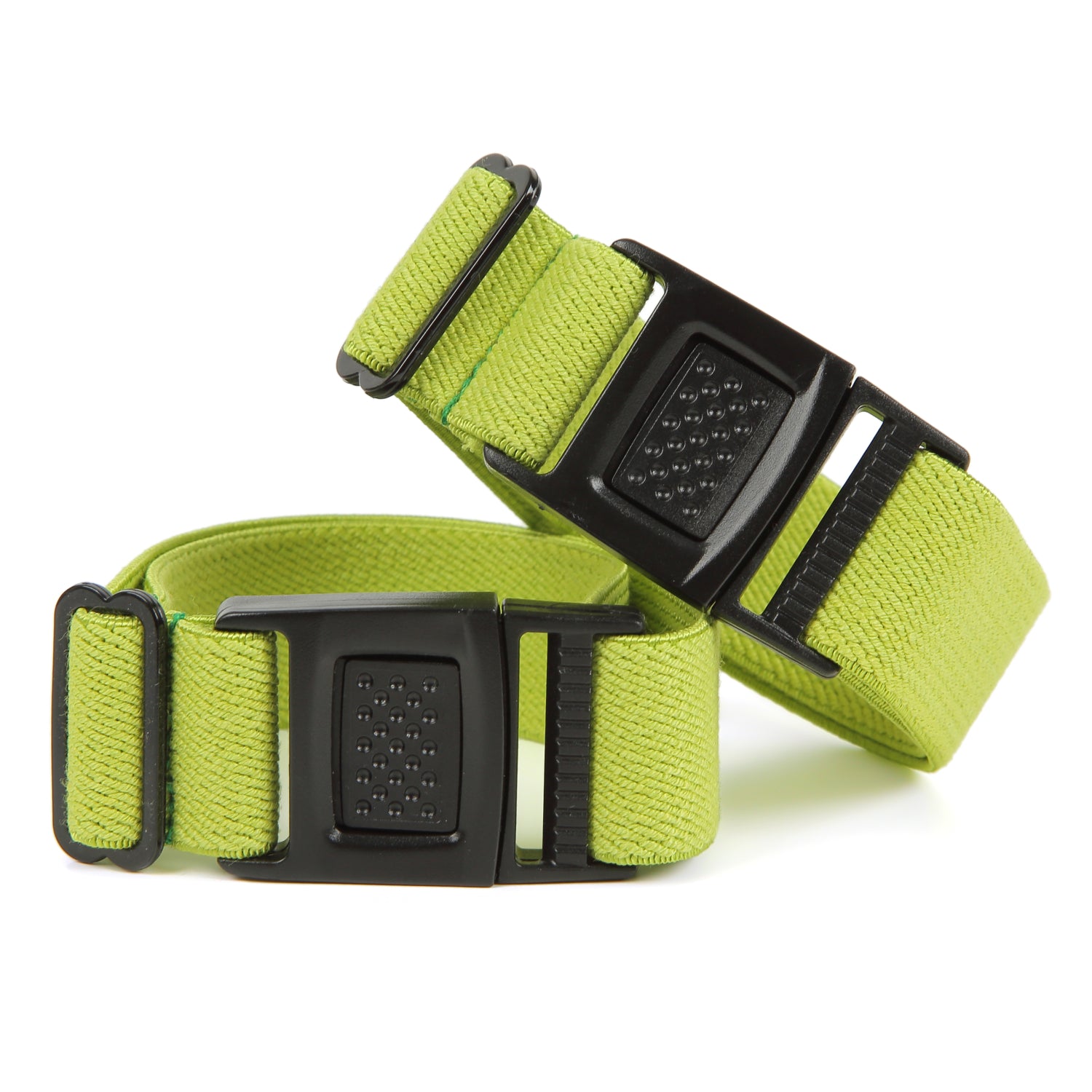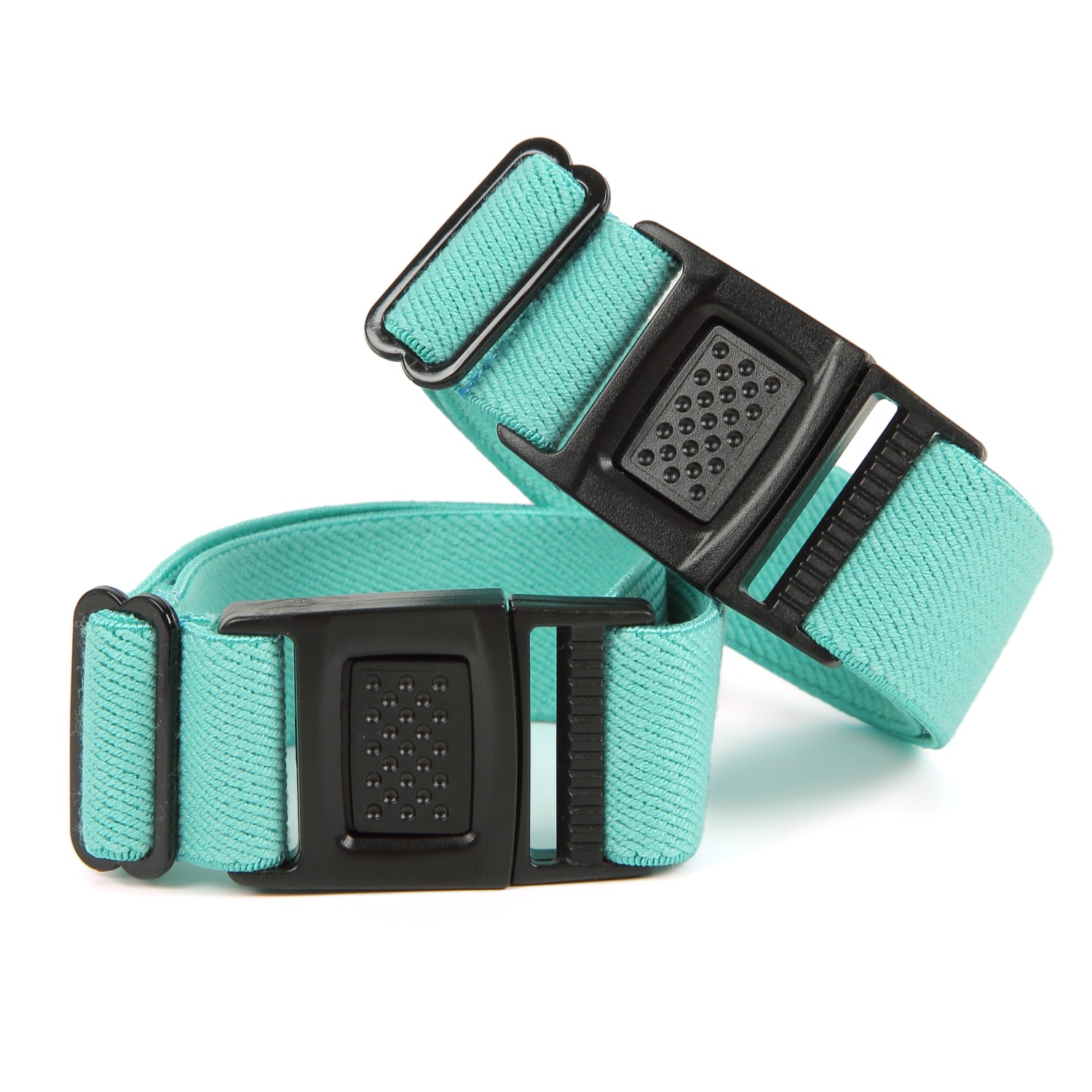 伸縮性のあるゴム生地にワンタッチで着脱ができるプラスチックバックルを採用。