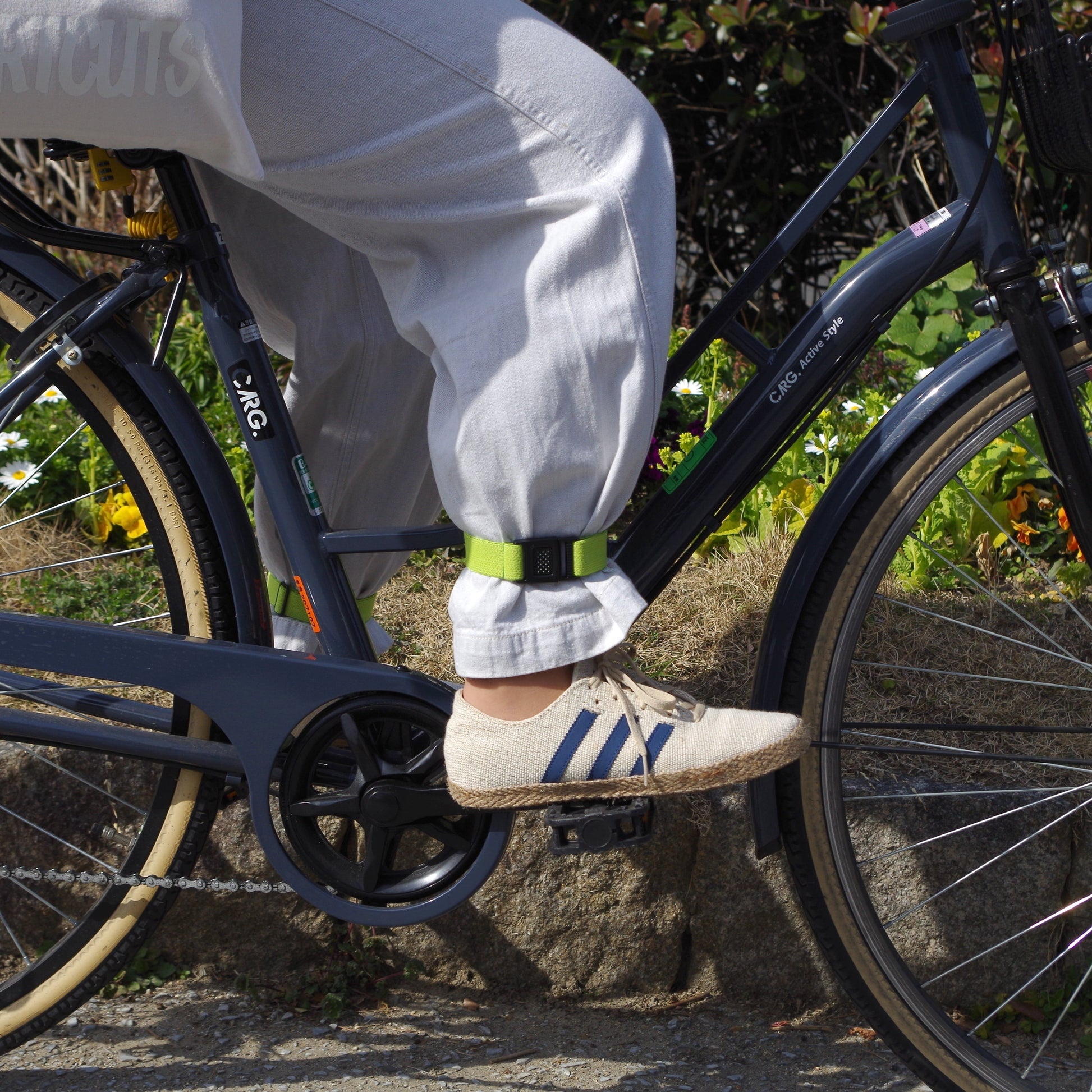 自転車に乗る時に起こりがちな裾の巻き込みを防止してズボンの汚れ問題を解決します。