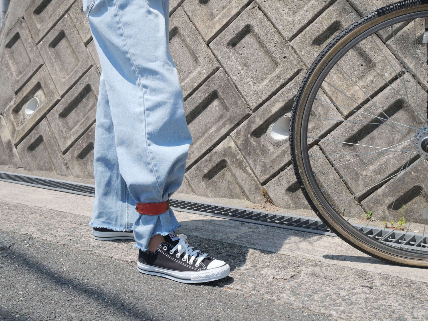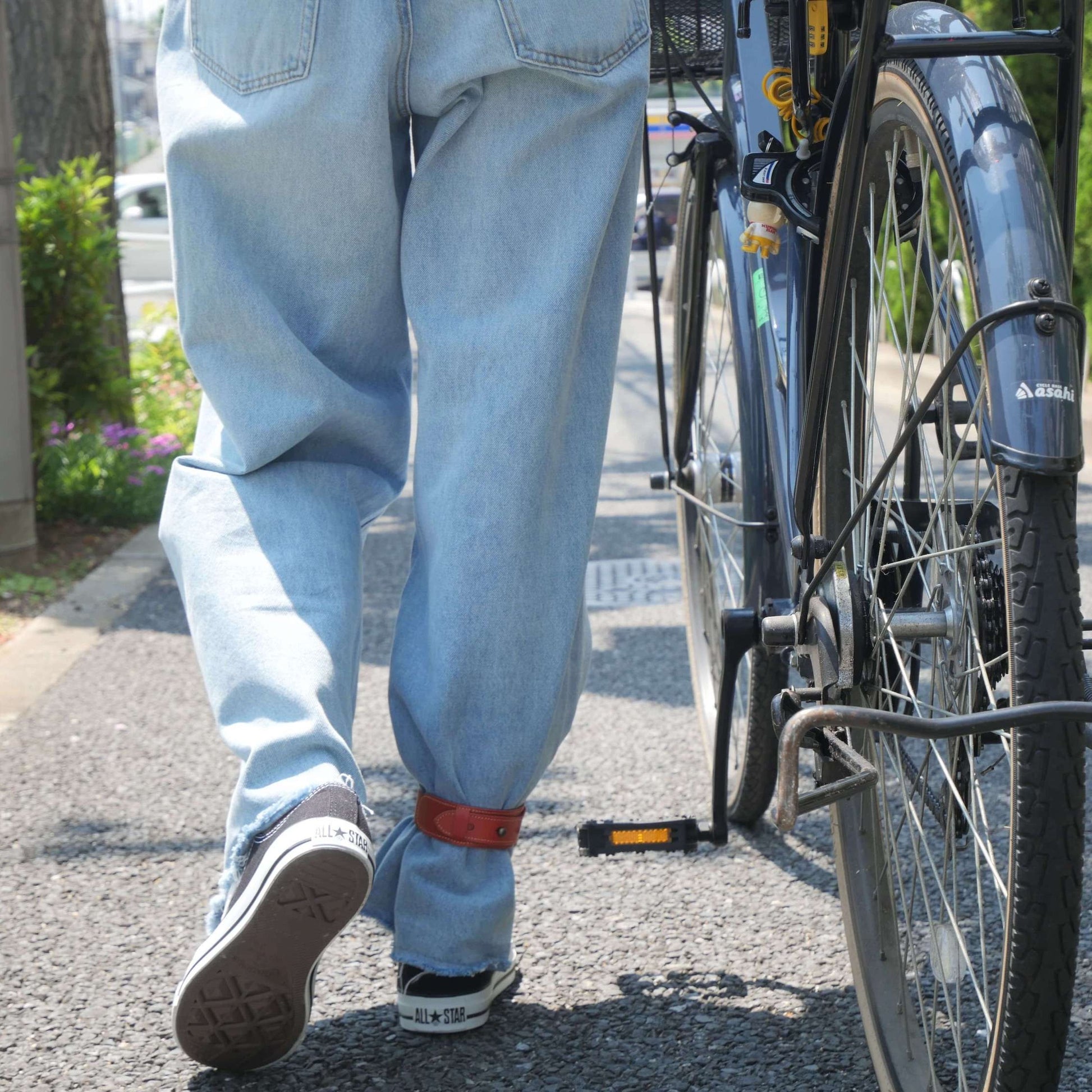 身だしなみ対策として、自転車に乗る時に起こりがちな裾の巻き込みを防止し、ズボンを汚れから守ります。